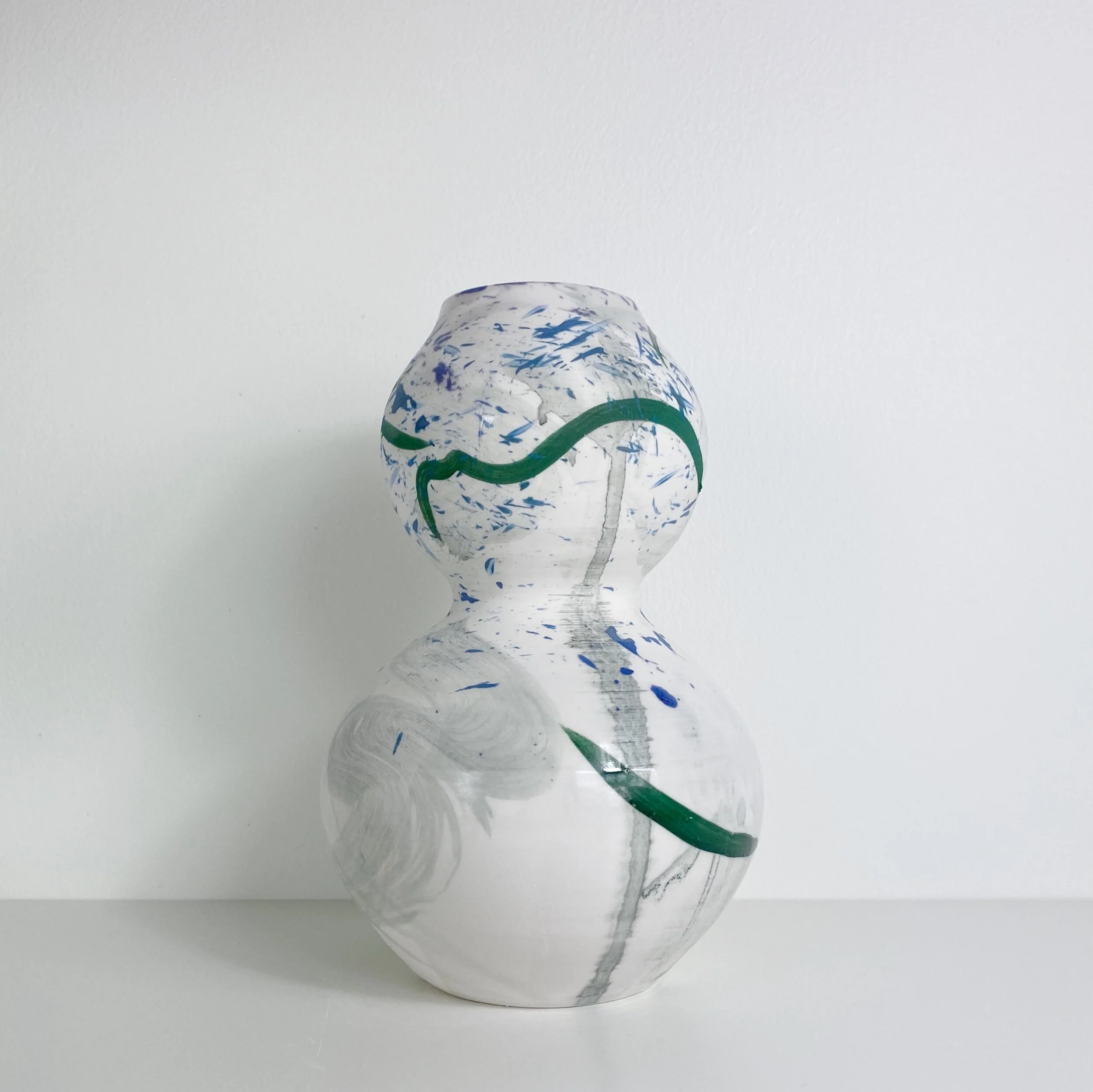 The collection also consisted of abstracted lines, taken from drawings completed out in the area, the lines were pulled apart, loosened and swept onto the pots. These added a visual aspect of the mountains without being a direct, cliche connection.